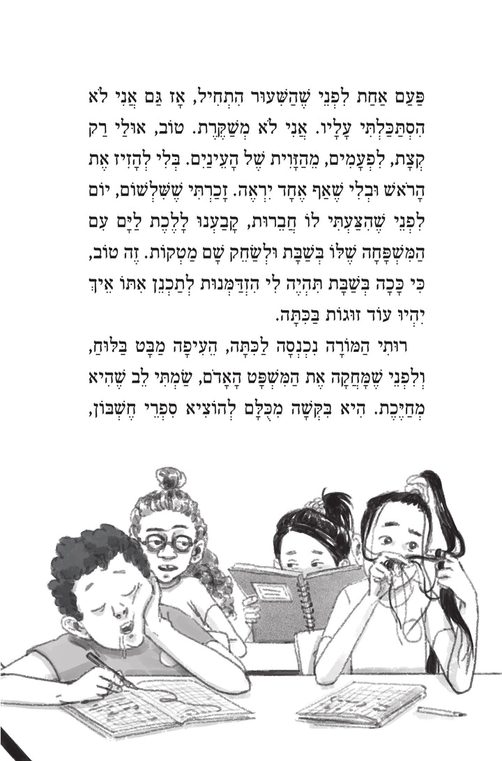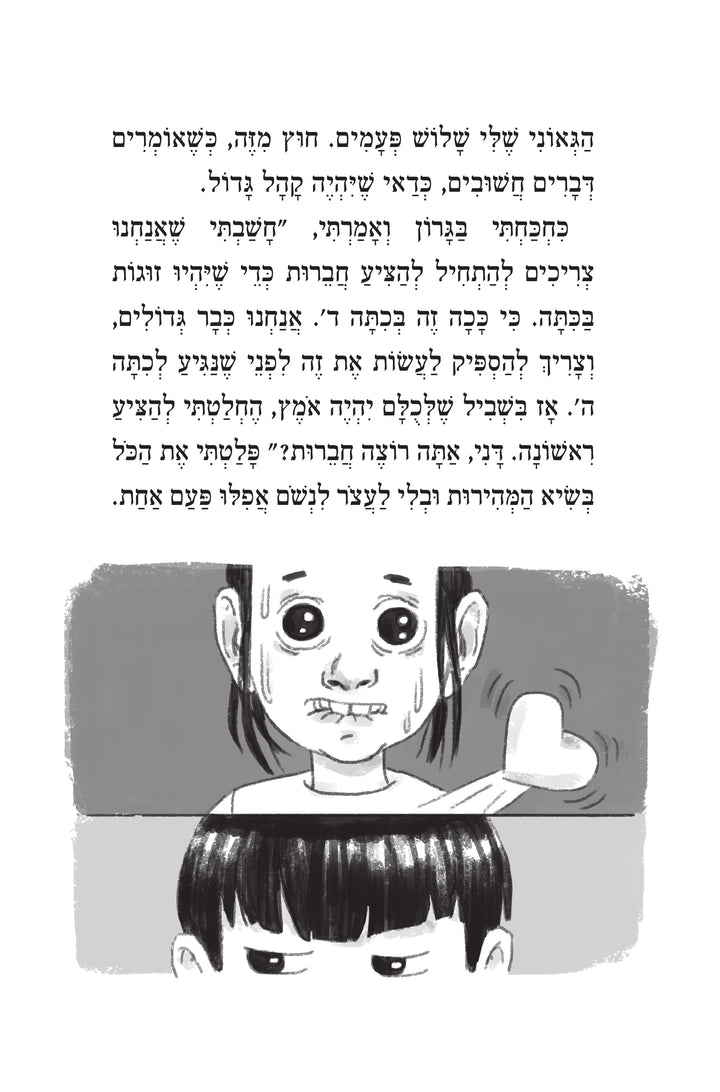 בְּכִתָּה ד' אַתְּ כְּבָר צְרִיכָה חָבֵר. אֲנִי זוֹכֶרֶת שֶׁיָּעֵל, אֲחוֹתִי הַגְּדוֹלָה, קִבְּלָה בְּכִתָּה ד' הַצָּעַת חֲבֵרוּת מִיָּהלִי, וְאָז הֵם הָיוּ חֲבֵרִים הֲמוֹן זְמַן. אוּלַי אֲפִלּוּ חָדְשַׁיִם, אֲנִי לֹא מְשַׁקֶּרֶת. הֲכִי טוֹב יִהְיֶה אִם דָּנִי יַצִּיעַ לִי כְּבָר חֲבֵרוּת. אַחֶרֶת אֲנִי אֶעֱלֶה לְכִתָּה ה' לִפְנֵי שֶׁיִּהְיֶה לִי חָבֵר, וְזֶה מַמָּשׁ לֹא טוֹב. בֶּאֱמֶת.